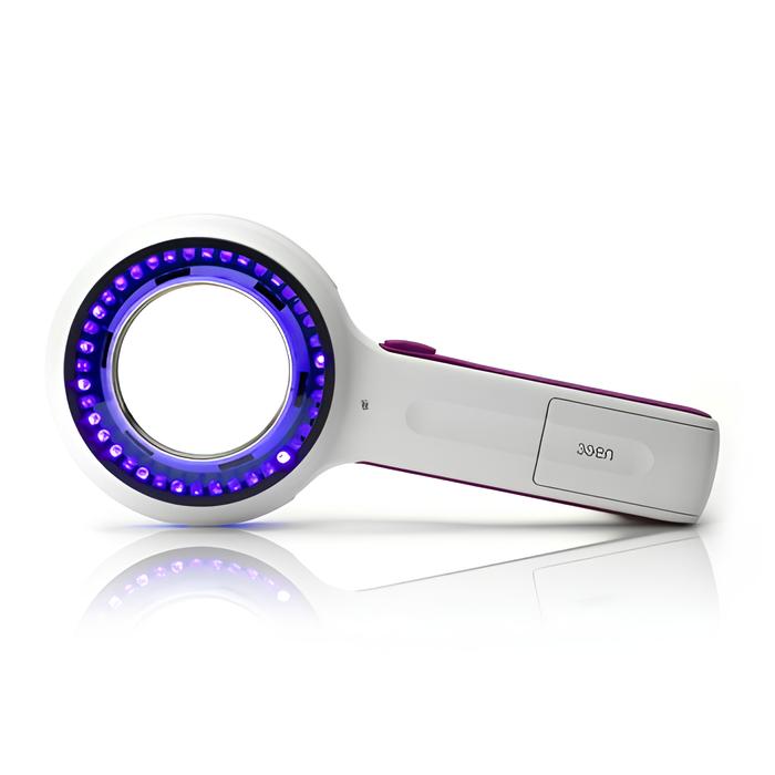 Lumio UV is a modern reincarnation of a Woods lamp. With its 75 mm lens offering a magnification of 2x, the power of 40 UV LEDs (light emitting diodes) Lumio UV is a great tool for a variety of examinations which require UV light.